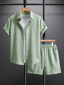 Effortlessly refined and summer-ready, this men’s two-piece set combines timeless simplicity with casual ease. Featuring a short sleeve, single-breasted shirt and matching drawstring waist shorts, the lightweight polyester fabric ensures breathable comfort for warm days. Whether you're heading to a beachside café or enjoying a laid-back afternoon, this coordinated outfit brings understated style and relaxed versatility to your wardrobe.